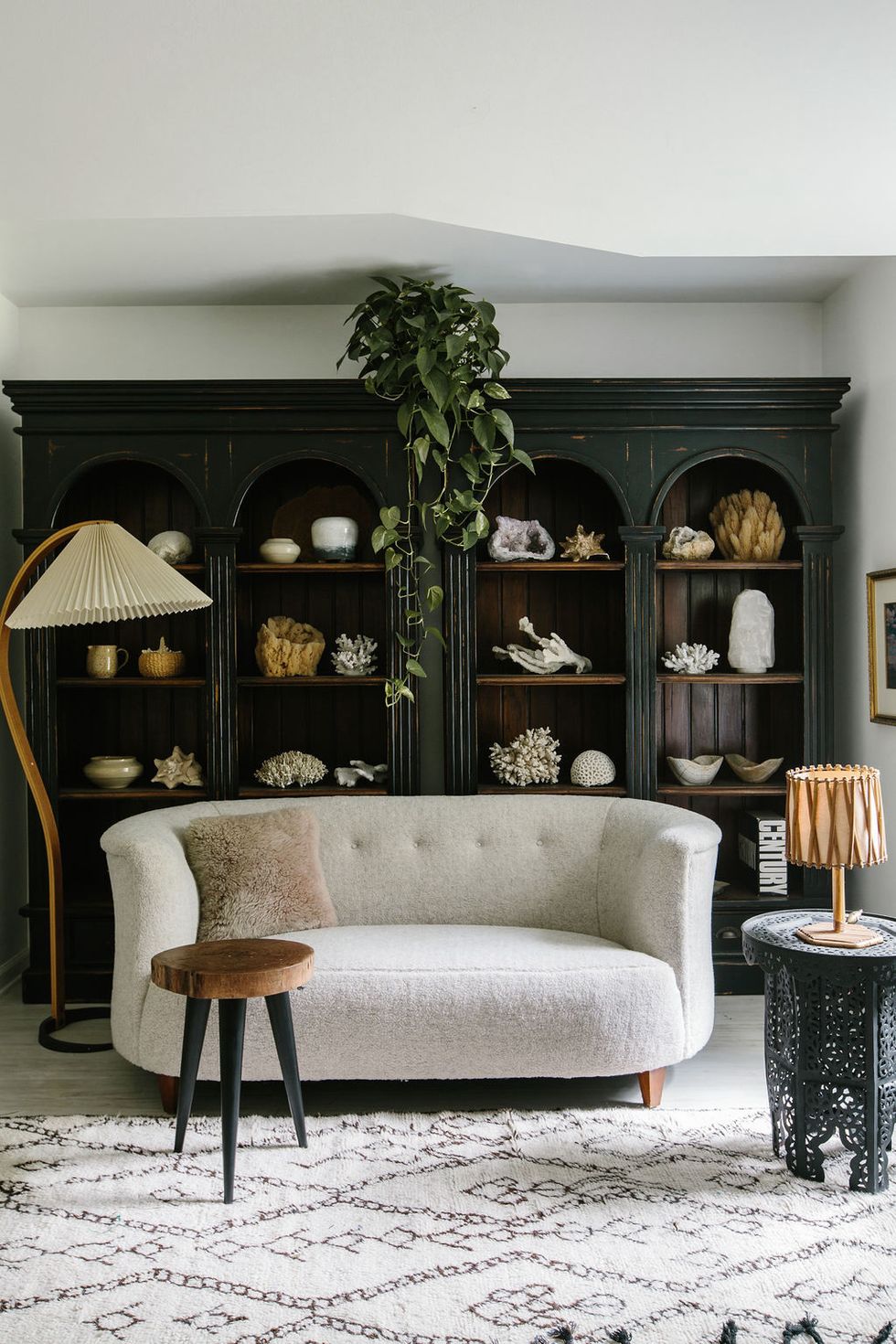 Những cuốn sách cũ và đồ gia truyền sẽ ngay lập tức khiến căn phòng có cảm giác cá nhân hơn, đồng thời những chiếc kệ lộ ra ngoài và/hoặc tủ có kính sẽ thực sự khiến chúng tỏa sáng. Trong phòng khách do Oliver Thornton thiết kế này , chúng tạo thêm nét đặc sắc và nói lên sự ấm áp nhiều lớp của đồ nội thất, mặc dù không gian không lớn.