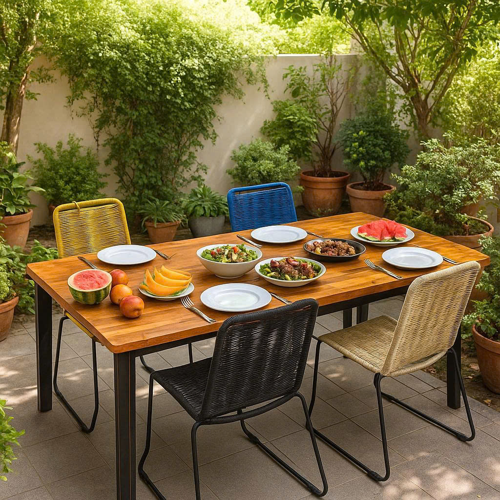 - Tạo không gian tiệc hoàn hảo ngoài trời: Với sự kết hợp giữa tính năng và thiết kế, bàn ăn giúp bữa tiệc của bạn trở nên trang trọng và ấn tượng hơn.