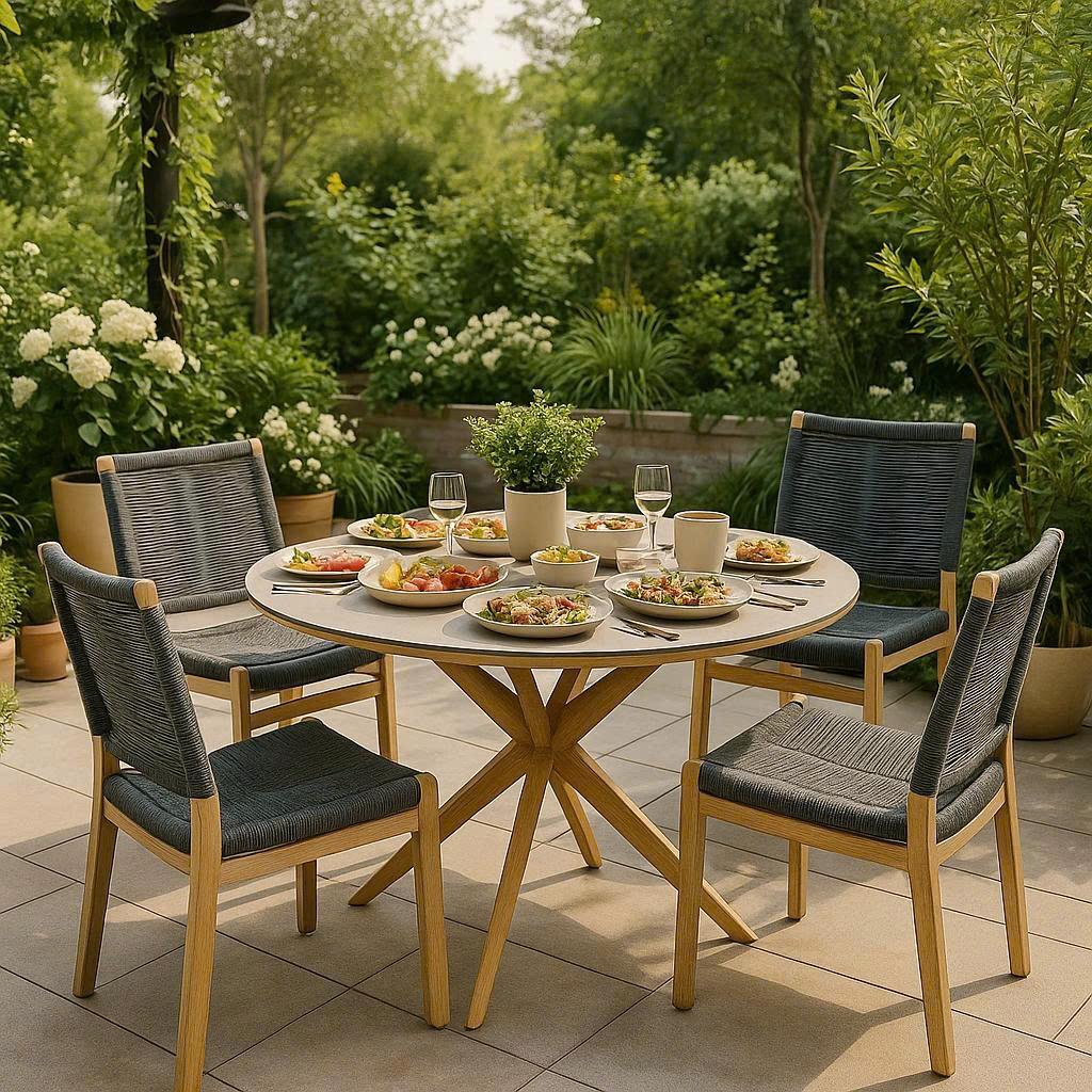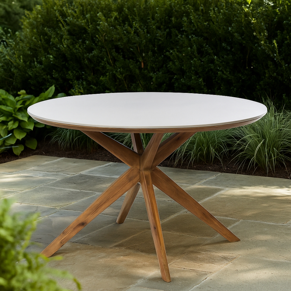 Bền bỉ và chắc chắn: Chất liệu mặt bàn chống thấm nước, trầy xước; khung chân gỗ bạch đàn chịu lực tốt.