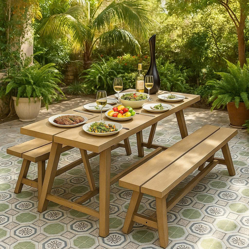 Với chất liệu gỗ bạch đàn đỏ cao cấp và lớp sơn PU bền bỉ, sản phẩm này không chỉ bền đẹp mà còn làm nổi bật sự sang trọng cho không gian sân vườn của bạn.