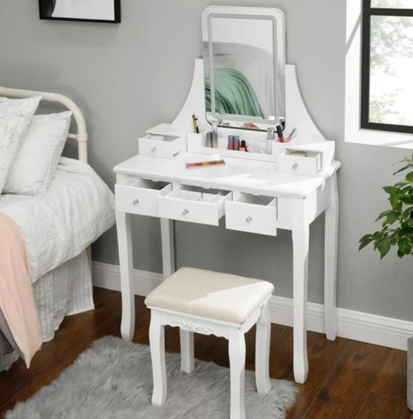 Bàn trang điểm: Với ngăn kéo và gương lớn, bạn có thể lưu trữ các sản phẩm làm đẹp và vật dụng trang điểm khác trong bàn trang điểm này.