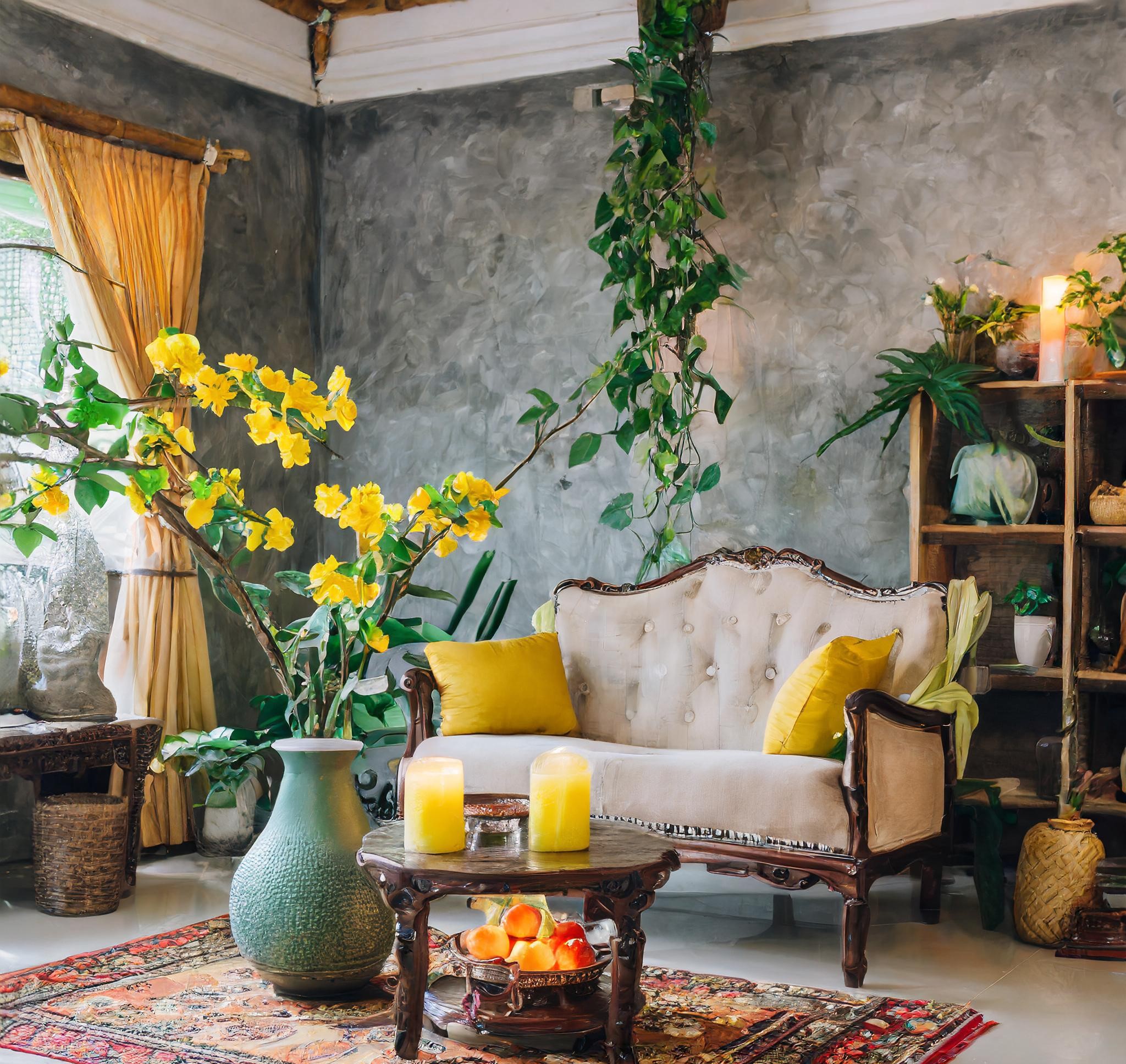 Cây cảnh không chỉ mang lại sự xanh mát mà còn giúp tạo nên bầu không khí dễ chịu. Chọn loại cây nhỏ phù hợp với không gian phòng khách và đặt chúng ở những góc phòng. Ví dụ, cây cỏ may mang lại vẻ thanh lịch và tinh tế.