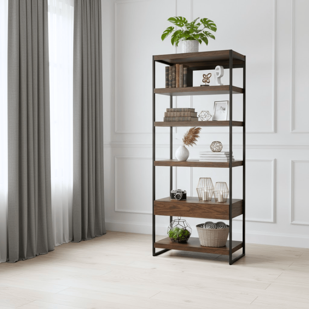 Thiết kế đa tầng thông minh: Với 5 tầng kệ rộng rãi và hộc kéo tiện lợi, sản phẩm giúp bạn tối ưu không gian lưu trữ và trưng bày. Bạn có thể dễ dàng bày biện sách, khung ảnh, cây cảnh hay đồ trang trí theo ý muốn.