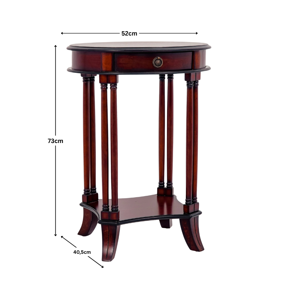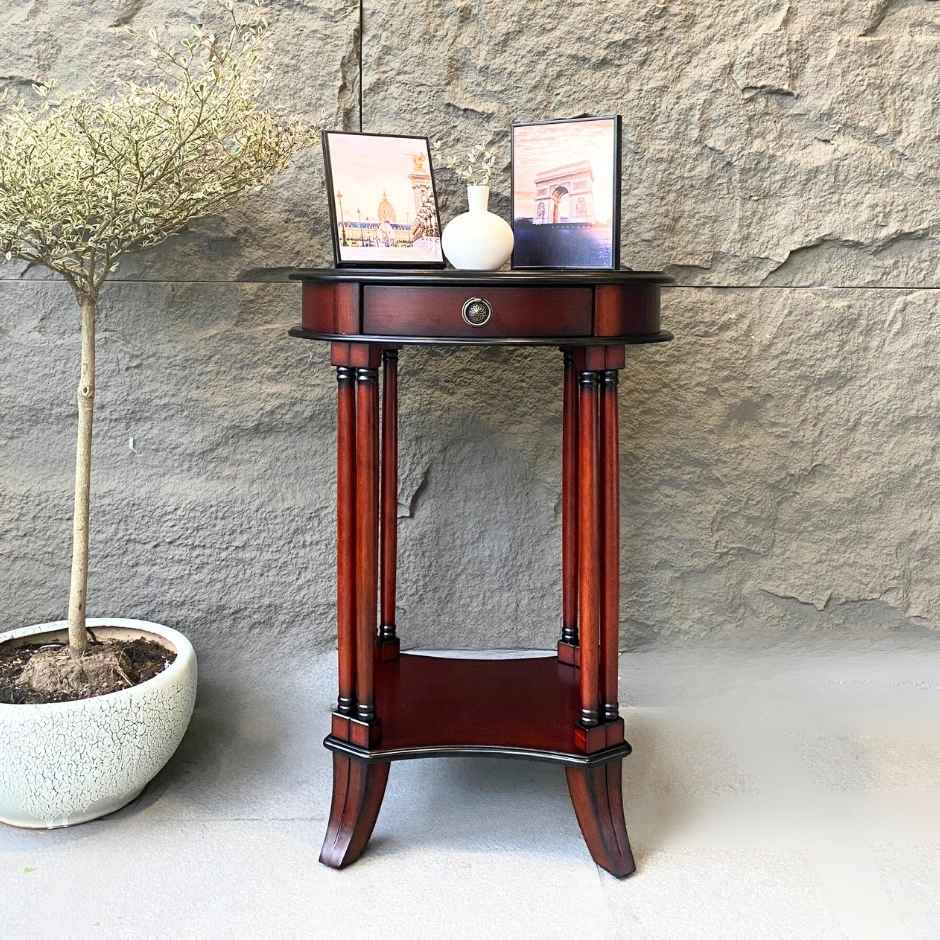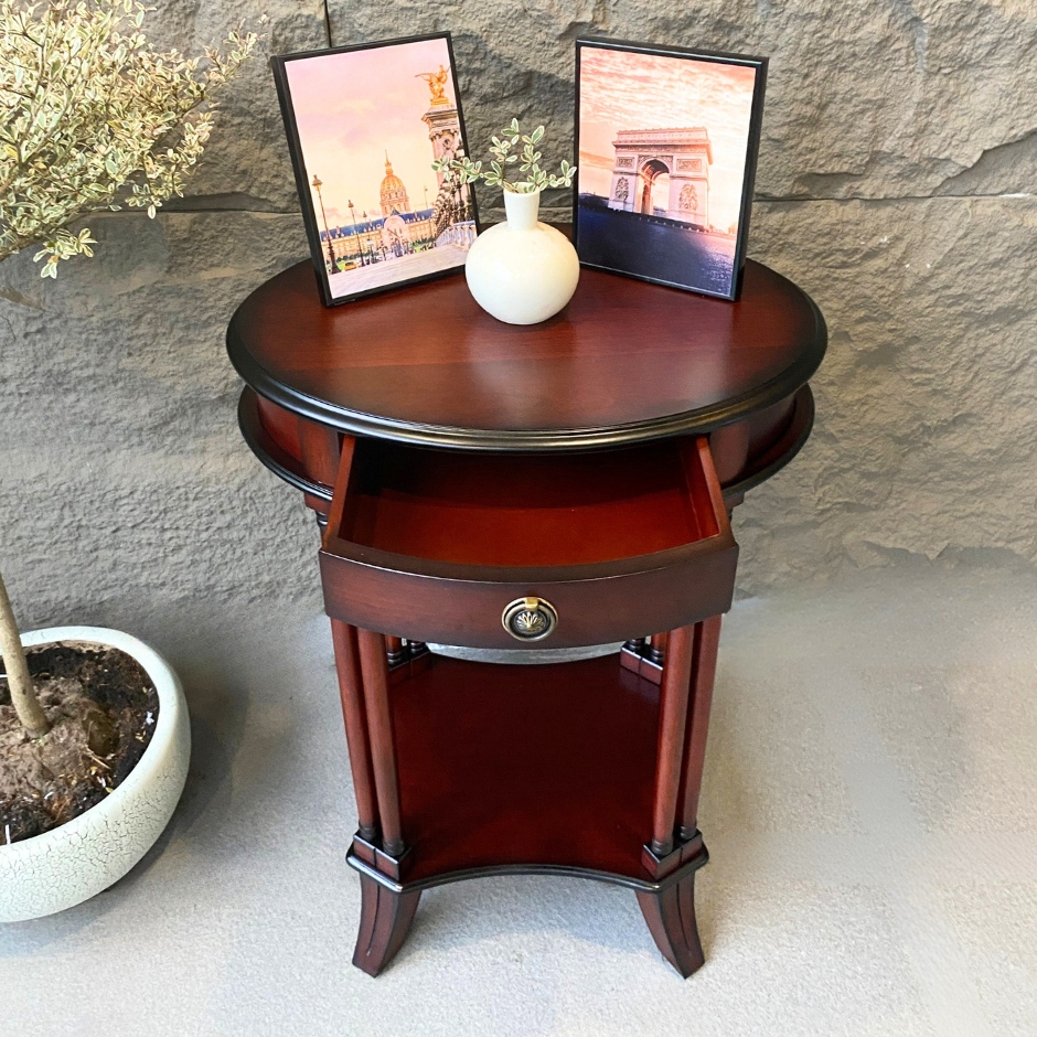 Thiết kế cổ điển với khoen kéo sang trọng: Sản phẩm được thiết kế theo phong cách cổ điển, với chi tiết khoen kéo hộc độc đáo và sang trọng. Đây là điểm nhấn đặc biệt giúp kệ trang trí Bombay - Oval trở thành tâm điểm cho không gian nội thất của bạn, tạo nên cảm giác đẳng cấp và tinh tế.