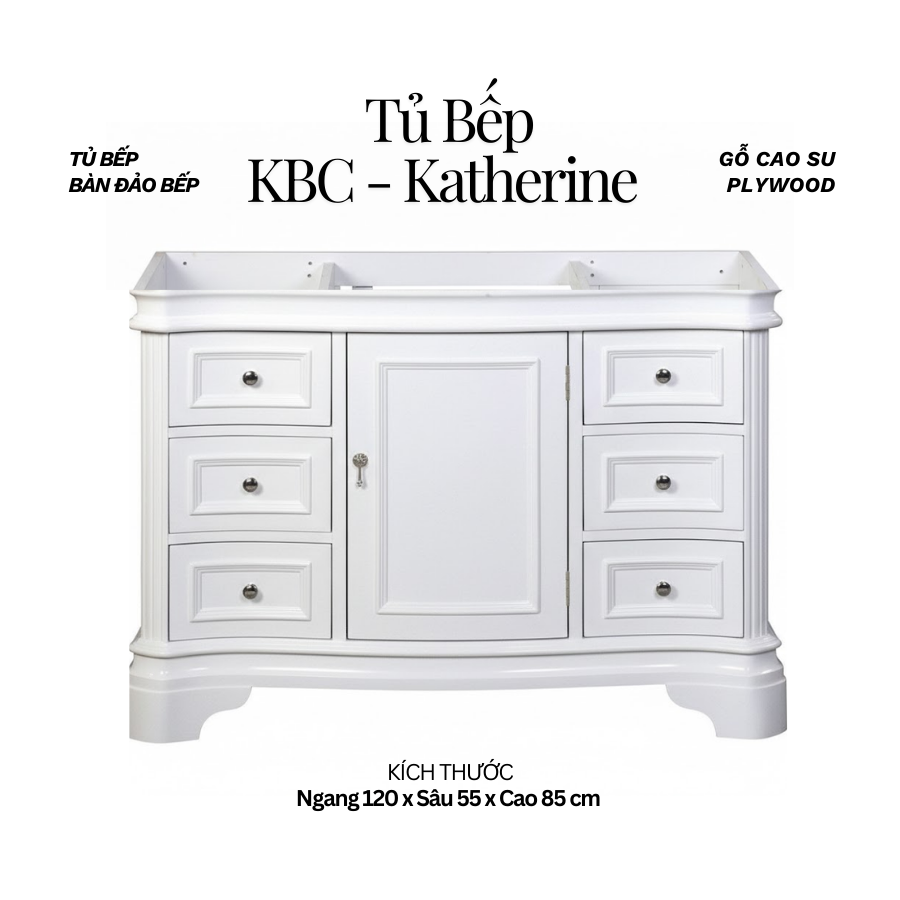 Khung Tủ Bếp & Đảo Bếp Gỗ Katherine màu trắng 48inch