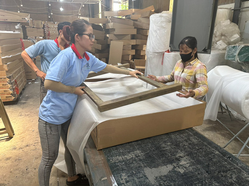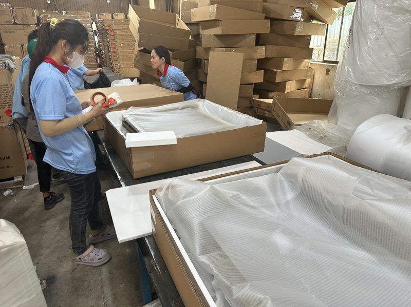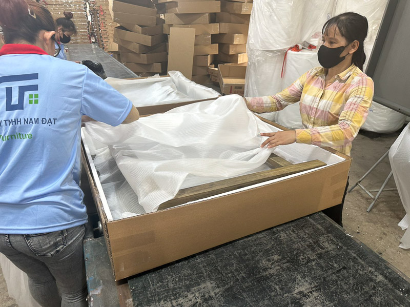 Sản phẩm hoàn thiện sẽ được đóng gói cẩn thận để bảo vệ trong quá trình vận chuyển. Các vật liệu đóng gói thường bao gồm bọt biển, giấy carton, và các vật liệu bảo vệ khác.