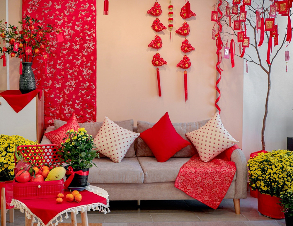 Cách trang trí nội thất phòng khách ngày Tết 2024