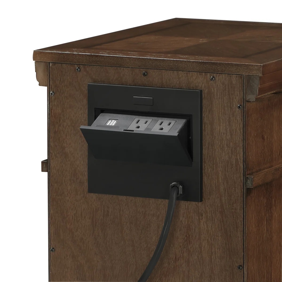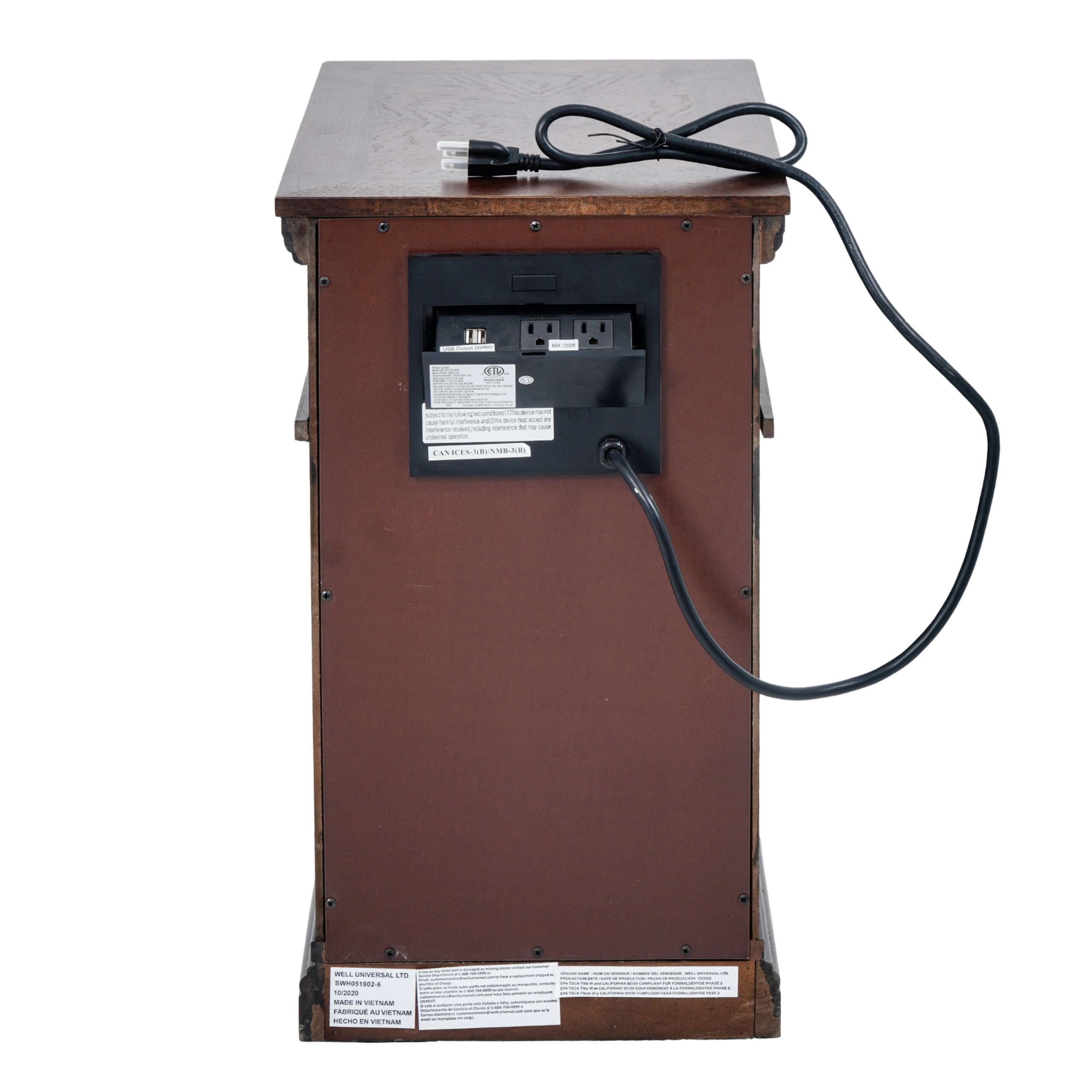 Tủ đầu giường được trang bị ổ cắm điện và cổng sạc USB phía sau, giúp tiết kiệm diện tích và giữ cho không gian luôn gọn gàng. Bạn có thể dễ dàng sạc điện thoại, máy tính bảng hay các thiết bị điện tử khác ngay tại chỗ mà không cần phải di chuyển.